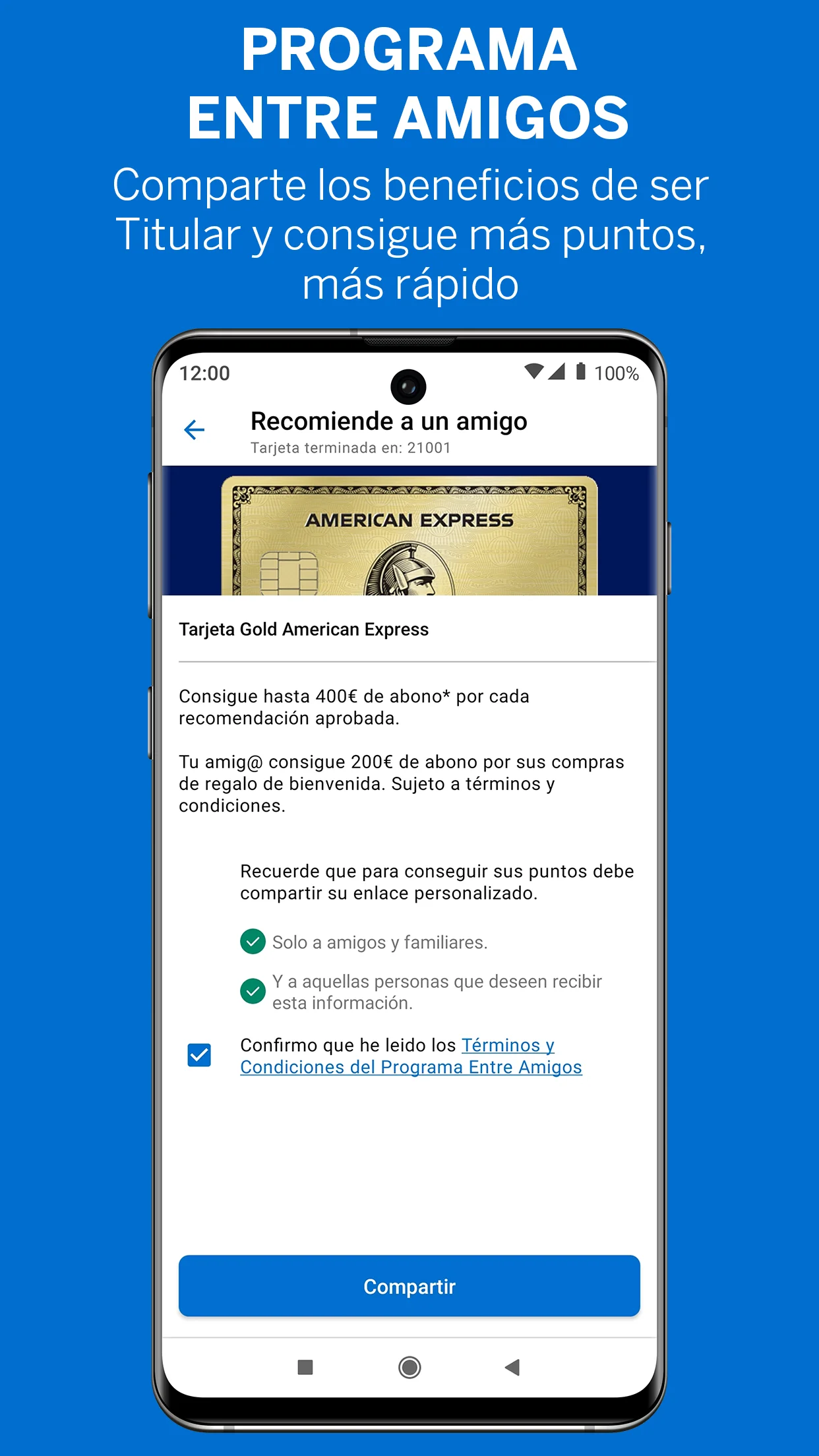 Dependiendo de la promoción que esté activa en el momento en que tu amigo solicite la tarjeta desde tu enlace de recomendación podrás conseguir recompensas en puntos o reembolsos en efectivo.