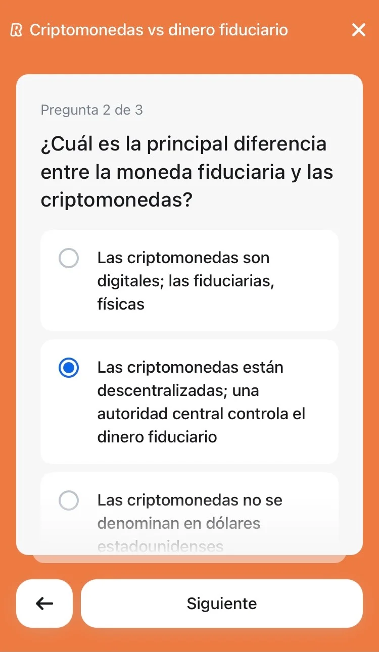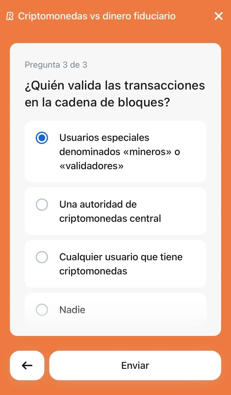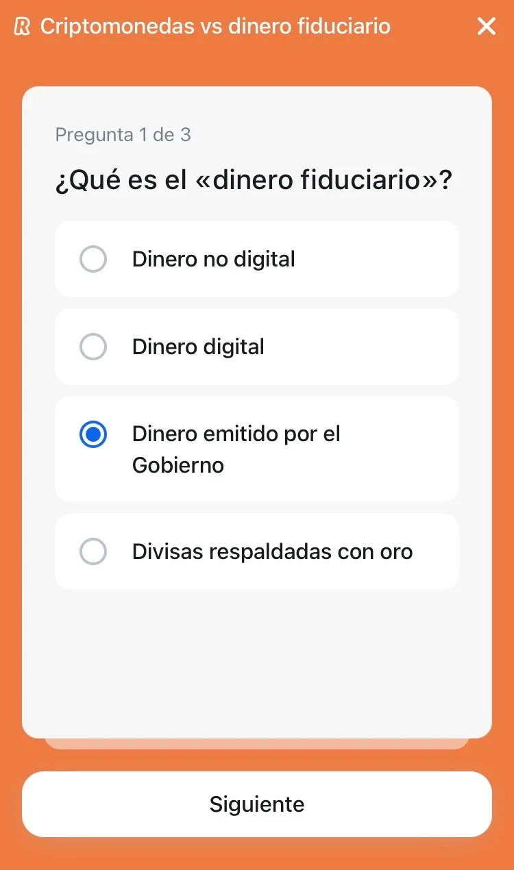 Lección 1: Criptomonedas VS dinero fiduciario (3 preguntas)
