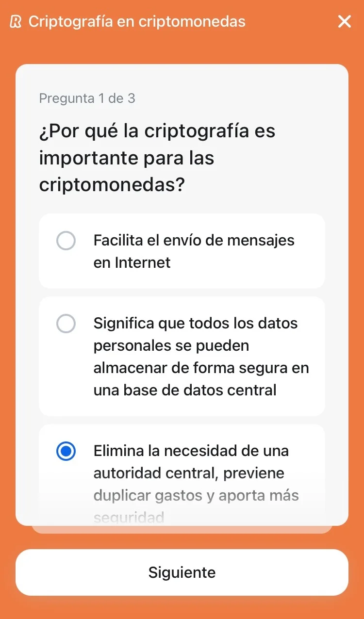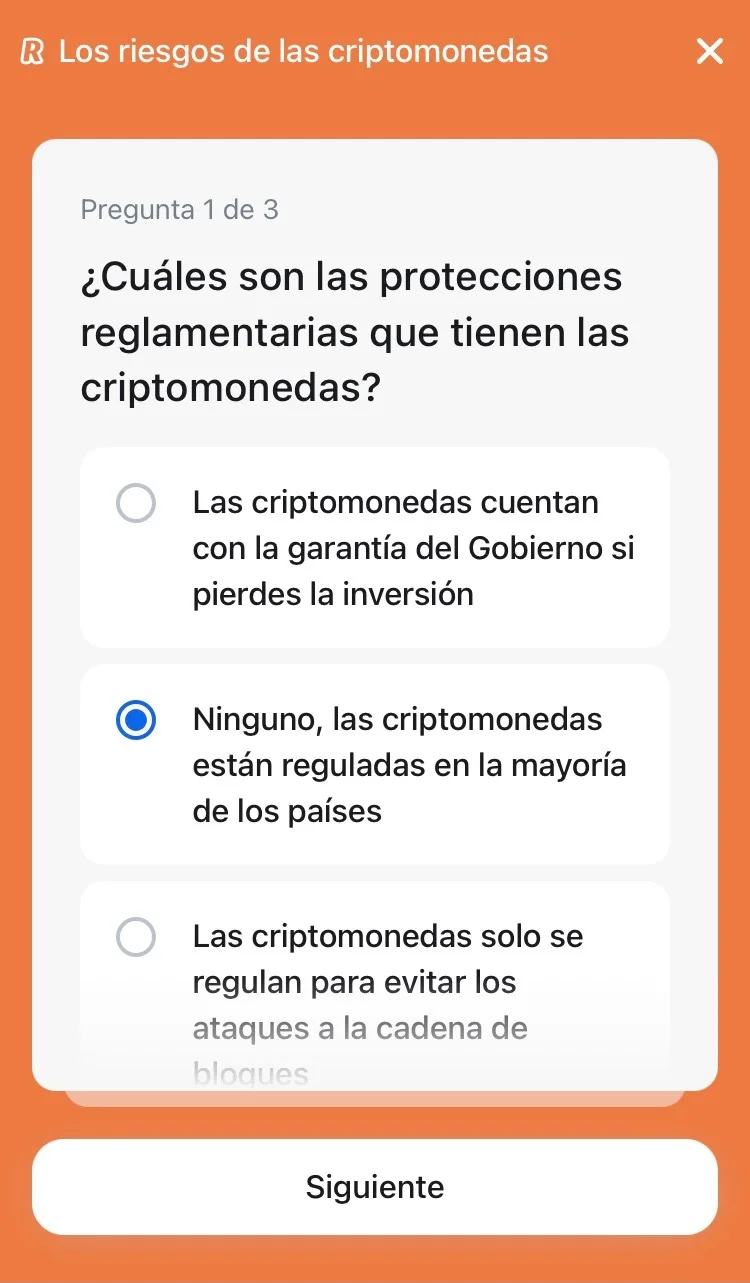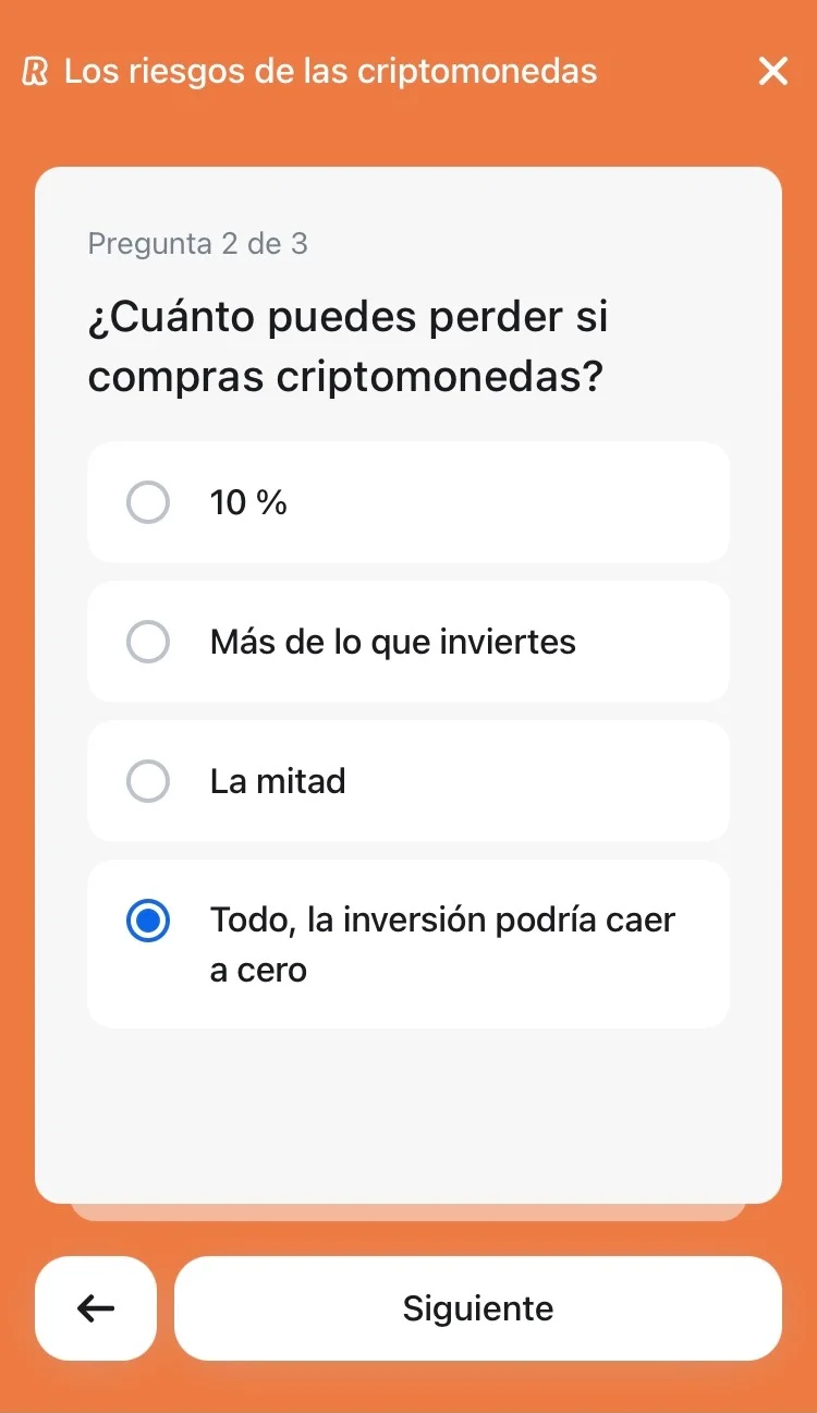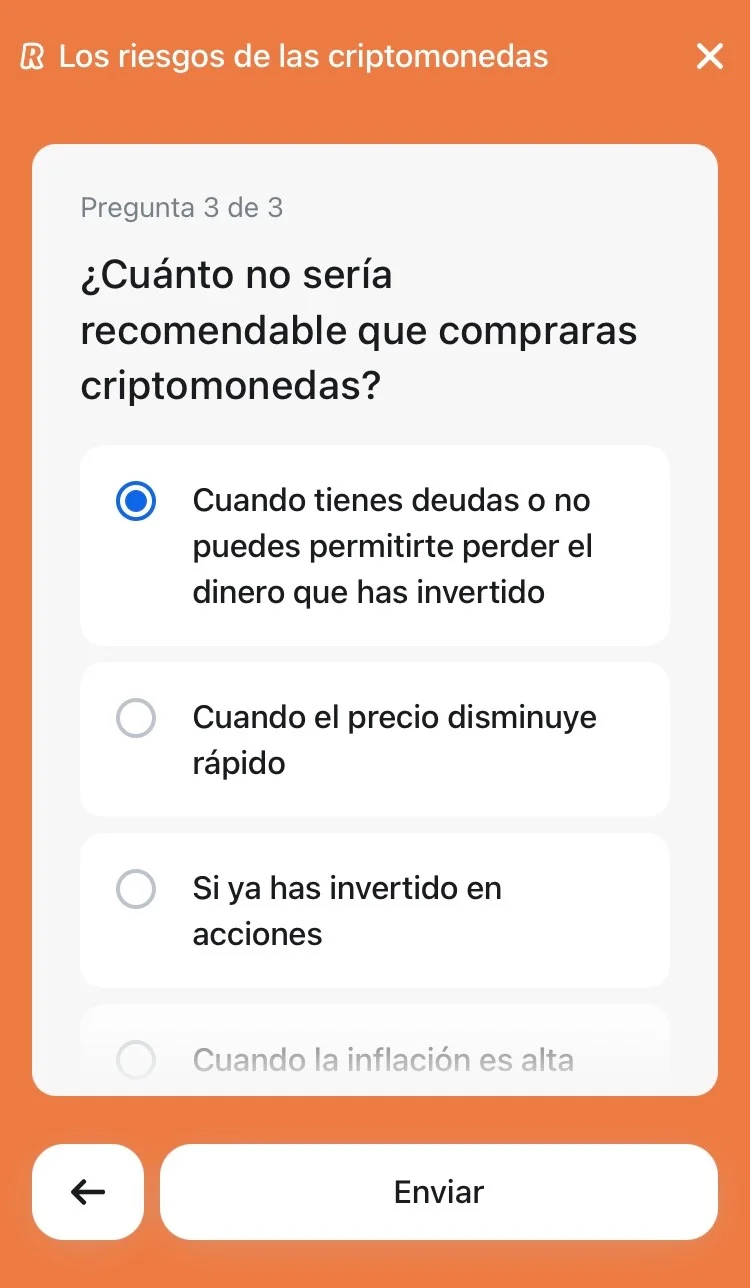 Puedes hacer el test en la app de Revolut en la sección de Criptomonedas>Aprender.