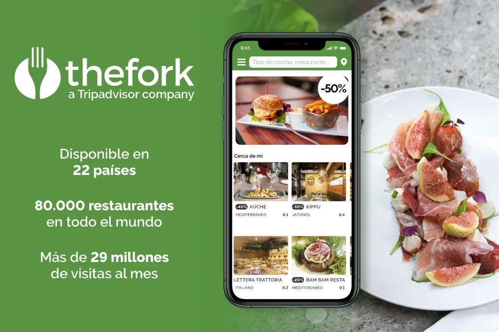 TheFork es una plataforma online disponible en versión web y APP, que permite a los usuarios reservar online en más de 60.000 restaurantes de diversos tipos de comida y en diferentes países.